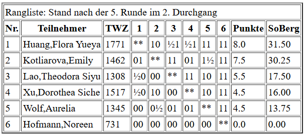 In der U12w haben sechs Spielerinnen ein Rundenturnier mit zwei Durchgängen gespielt.