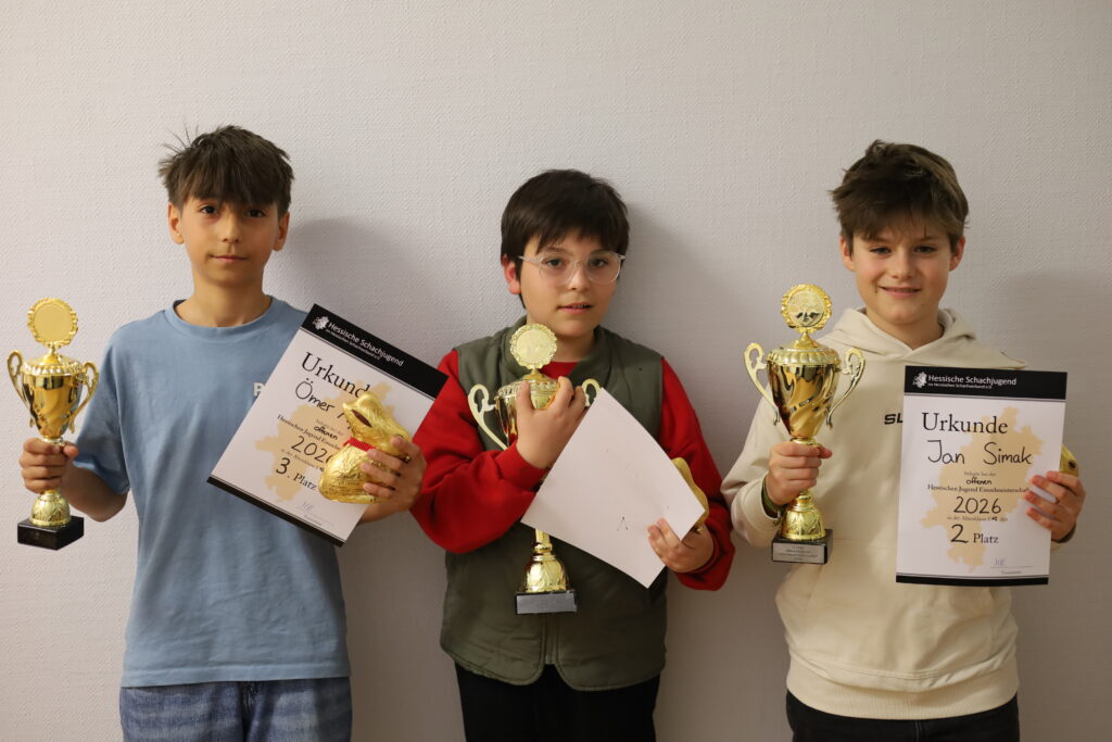 Noel Krieg (6 Punkte) siegt im U12 Open vor Jan Simak (5,5 Punkte) und Ömer Ayal (5 Punkte).