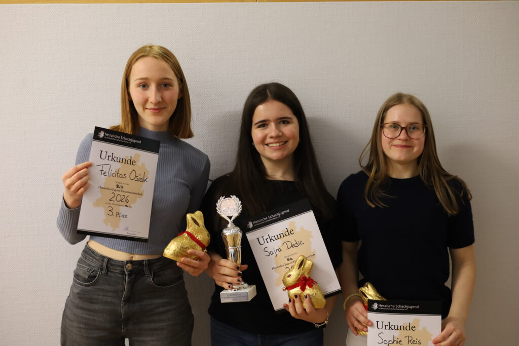 Sajra Dedic darf sich nun Blitz-Hessenmeisterin nennen. Sophie Reis und Felicitas Osiak wurden 2. und 3. Platz.